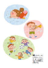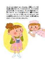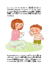 本を開いていただいて、最初に目に入るのは、お子さまが、「必要な薬をちゃんと続けること」「ピークフローモニタリングの意味」「環境整備の大切さ」「楽しく治療を続けること」をごく自然に感じてもらえるような絵本です。イラストレーターのつじむらあゆこさんにすてきなページを作ってもらえました。