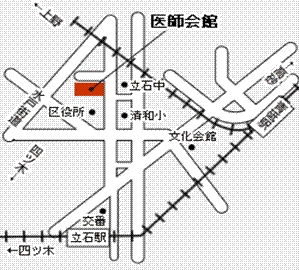 場所:葛飾区医師会館 京成青砥駅下車徒歩10分 (JR山手線 日暮里駅で京成線乗り換えて、特急(特別料金無し)に乗れば次の駅が青砥です。日暮里→青砥は、特急で10分です。) 青砥駅からタクシーをお勧めします。初乗り料金で来られます。 葛飾区医師会館は葛飾区役所の一ブロック隔てた北側です。 立石駅からも来られますが複雑ですので、絶対にお勧めしません。